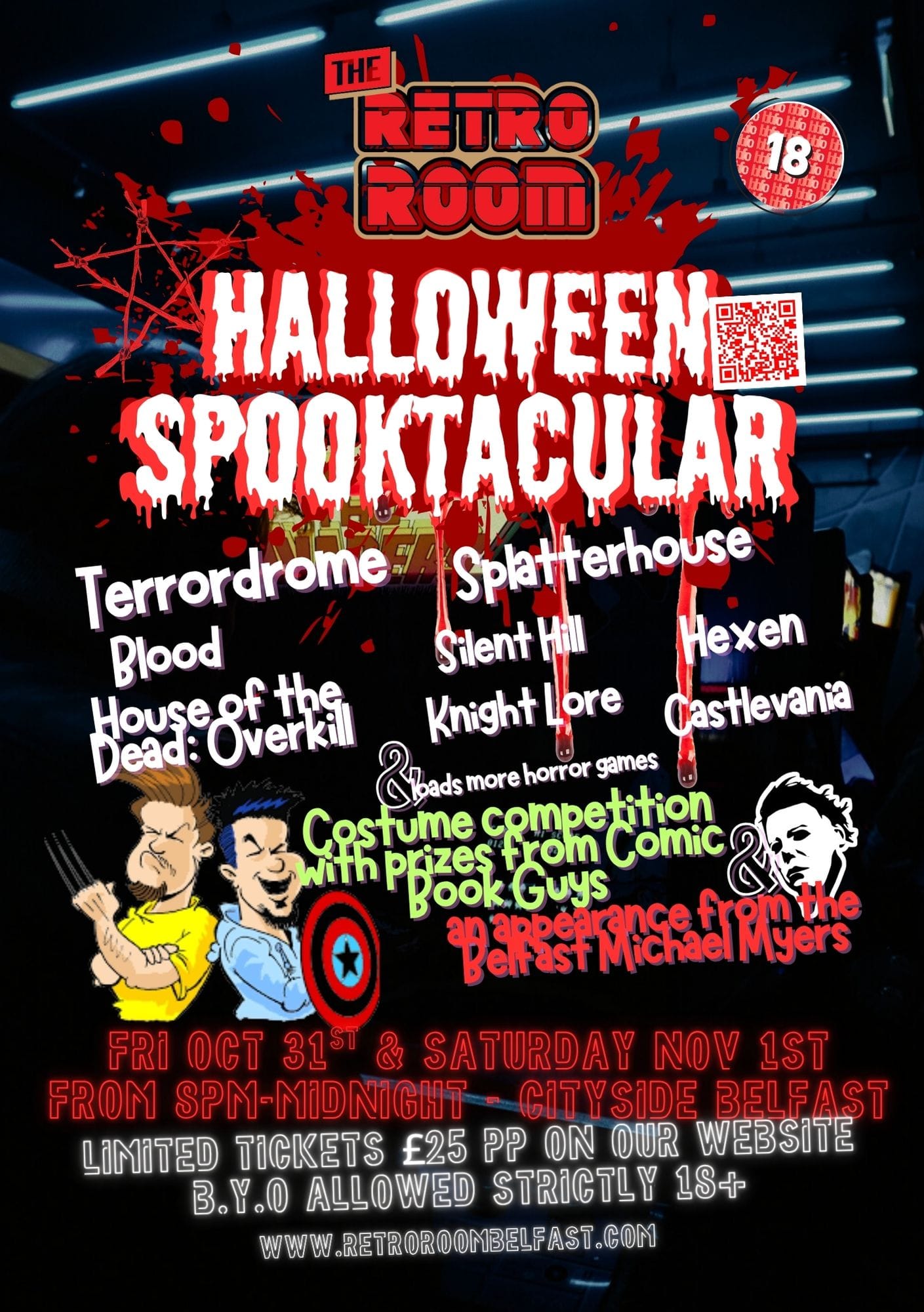 Come in costume and you’ll be able to win a big bag of goodies from our pals at Comic Book Guys and Black Axe Throwing! And we’ll have some secret scares happening on the nights too, the Belfast Michael Myers will be haunting Cityside on Saturday 1st. Who knows where he'll pop up! Only £25 for four hours of disgusting craic!